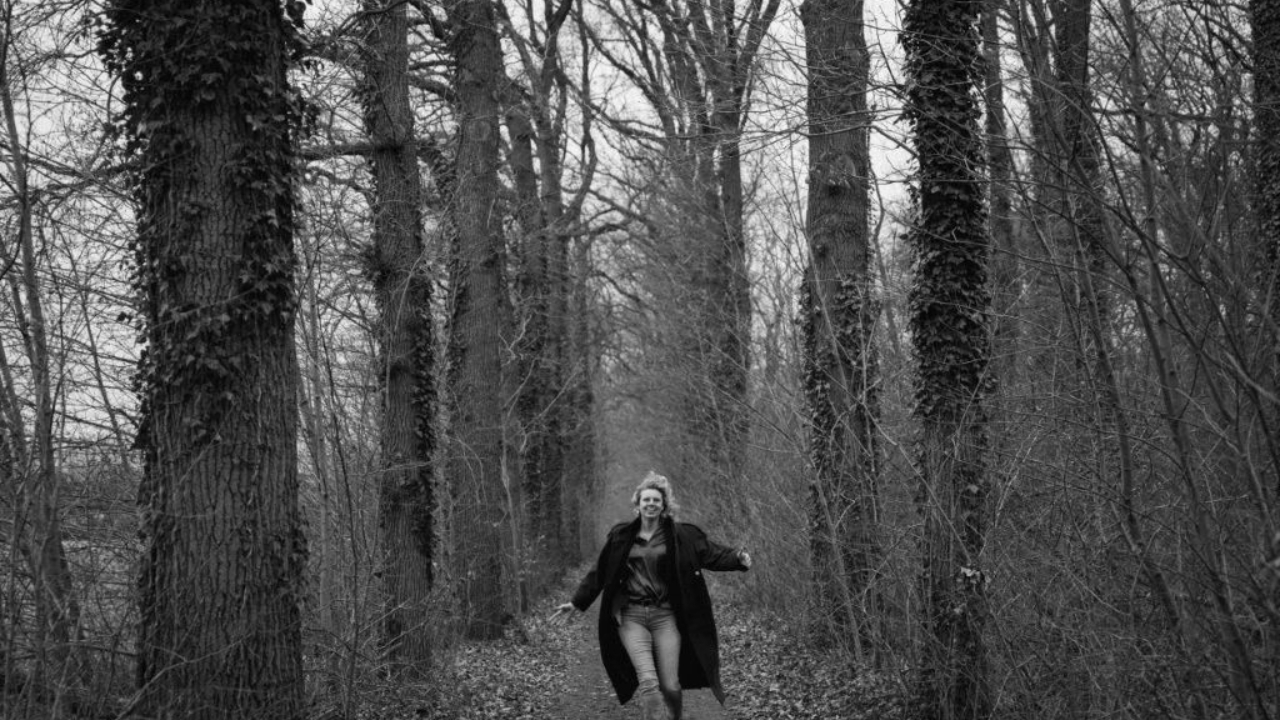 Esther van Hemert rent krachtig vooruit, symbool voor keuzes maken die passen bij jezelf, zonder schuldgevoel of twijfel.